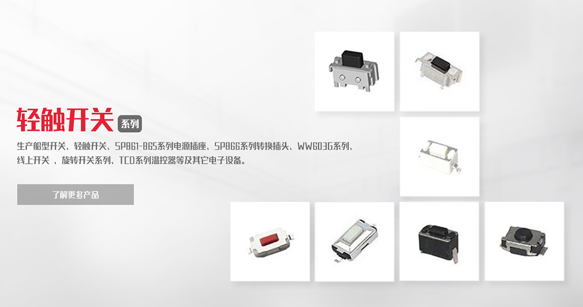 公司專業(yè)生產(chǎn)船型開關(guān)、輕觸開關(guān)、SP861-865系列電源插座、SP866系列轉(zhuǎn)換插頭、WW11系列微動(dòng)開關(guān)、WW01-03、09系列按鈕開關(guān)DS、WW系列指示燈開關(guān)、WW603G系列 線上開關(guān) 、旋轉(zhuǎn)開關(guān)系列、TCD系列溫控器等及其它電子設(shè)備。